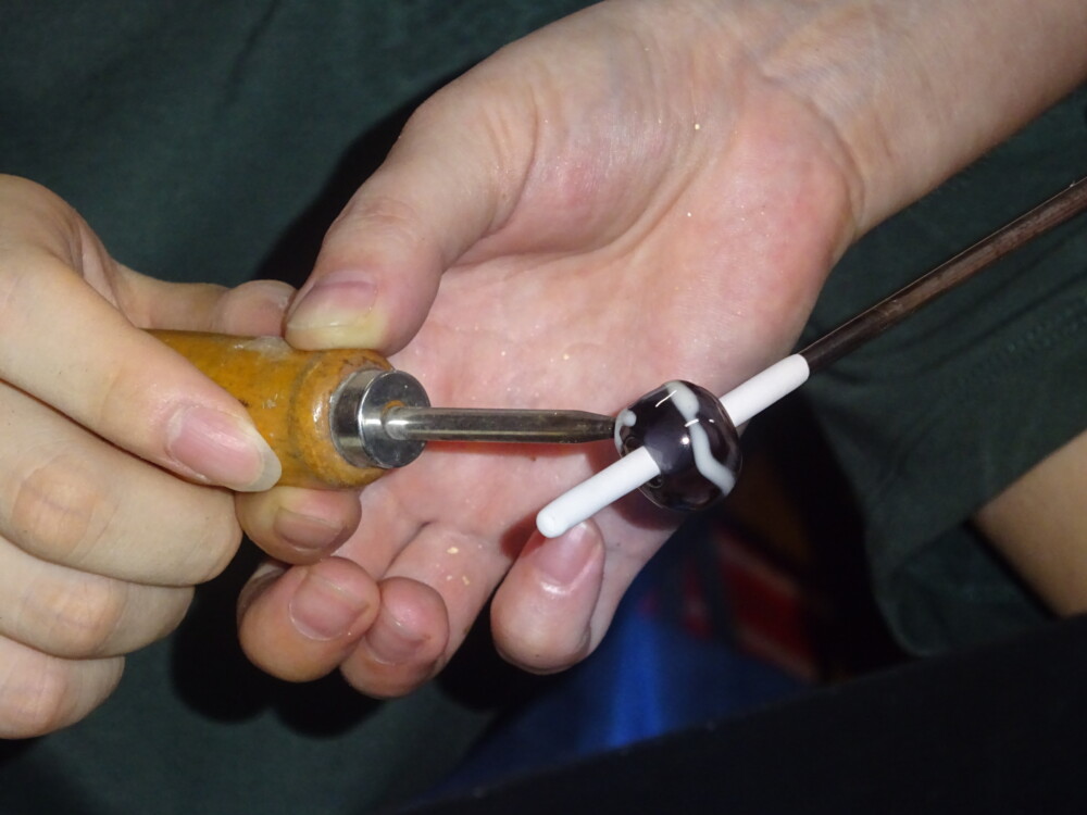 山梨県立都留高等学校定時制 > 活動の様子 > 学校行事 > 工芸美術教室(トンボ玉) 2023年8月30日カテゴリー: 活動の様子 学校行事 工芸美術教室(トンボ玉) 8月28日(月)の工芸美術教室では、大月市真木のガラス工房でトンボ玉制作に挑戦しました。生徒たちは初めての体験だったため、講師の説明を集中して聞いていました。順番を待つ間も仲間が作る様子をしっかり見ていて、自分の番では真剣な眼差しで制作に取り組みました。