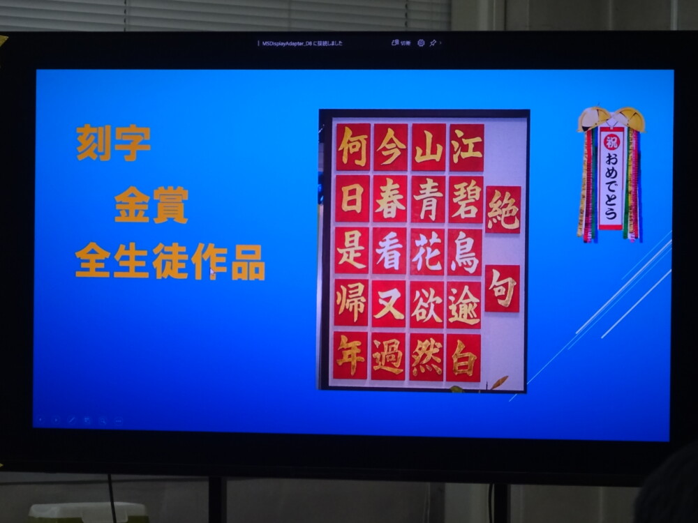 9月19日(火)に学園祭閉祭式が行われました。生活体験発表および文化作品展示各部門の優秀者が表彰され、お互いの健闘を讃え合いました。講評の中で教頭がテーマに触れながら「一心不乱に何かに取り組むことはなかなか難しいが、絵手紙や刻字、トンボ玉作り、生活体験発表等に一生懸命取り組めました。高校時代を振り返った時、あんなこと、こんなことがあったねと思い出せるような学園祭に来年もしたいですね」と全校生徒の取り組みを高く評価しました。
