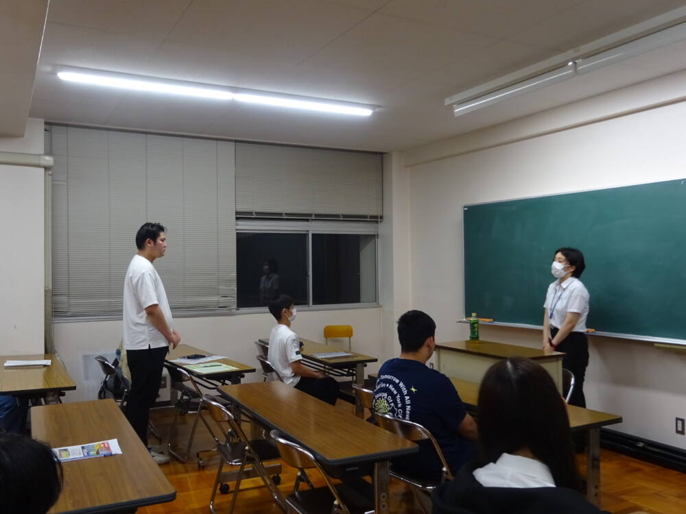 6月19日(水)に進路適性検査フィードバック講演会が開催されました。職業適性検査結果票の見方、学習の意義や身につけておきたい能力、就職試験の概要、進学に伴う費用等について学びました。また、面接のポイントに関する資料を見ながら、挨拶やお辞儀の基本動作を全員で練習しました。