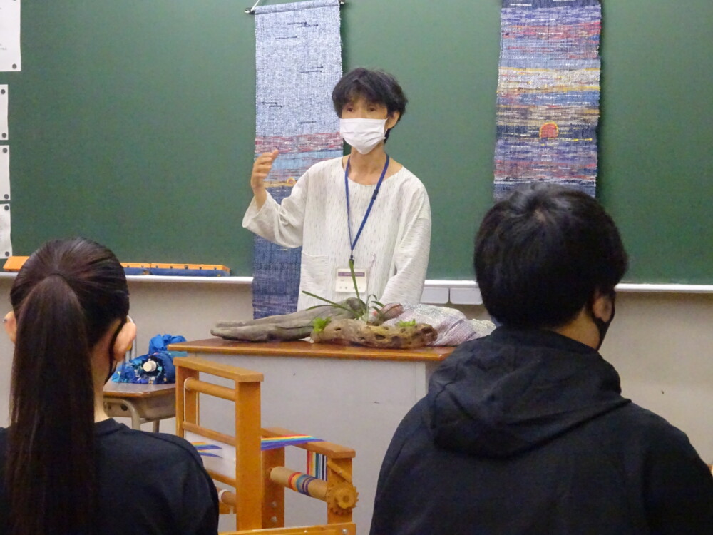 8月27日(火)~29日(木)と9月4日(水)に工芸美術教室が開催されました。今年度は都留高美術講師の大窪恭子先生が織物と流木アートについて御指導くださいました。古着を細く割いて作る織物と深城ダムの流木を組み合わせたオブジェの制作に取り組みました。「大月市の歴史についても教えていただきながら、いろいろな体験ができて楽しかったです」と生徒代表がお礼の言葉を述べました。
