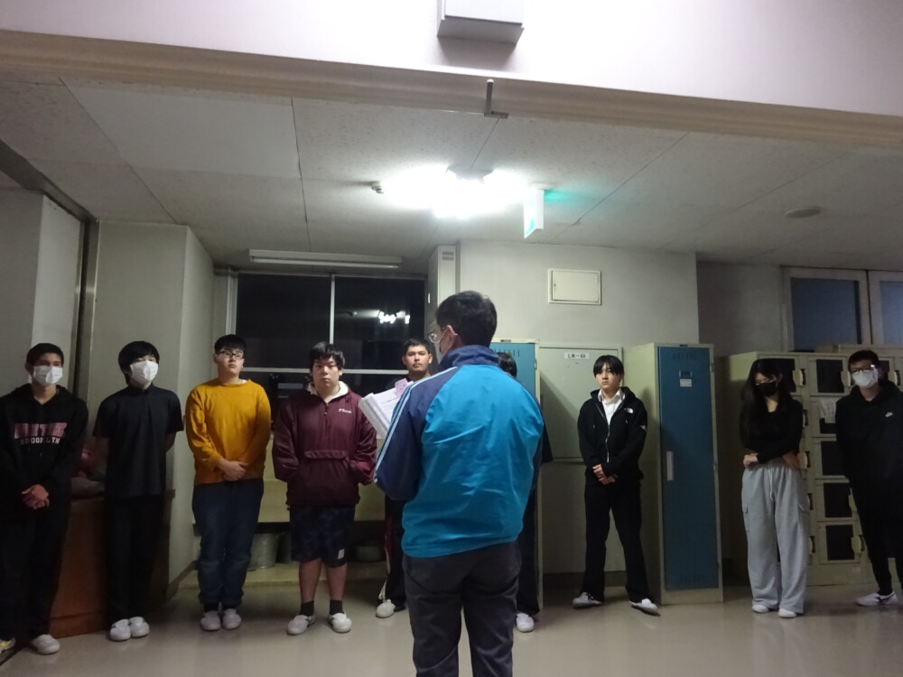 今年度2回目の防災避難訓練が10月25日(金)に実施されました。「線状降水帯による大雨が続いていた中で地震が起こり、校舎裏山に土石流が発生し、定時制のある北館にも危険が迫っている」という想定で北館4Fに避難しました。訓練後の講評で教頭が、「実際に災害が起こったらどうすればよいか各自で考え、避難場所や方法、連絡手段等について日頃から家族とよく話し合っておこう」と呼びかけました。
