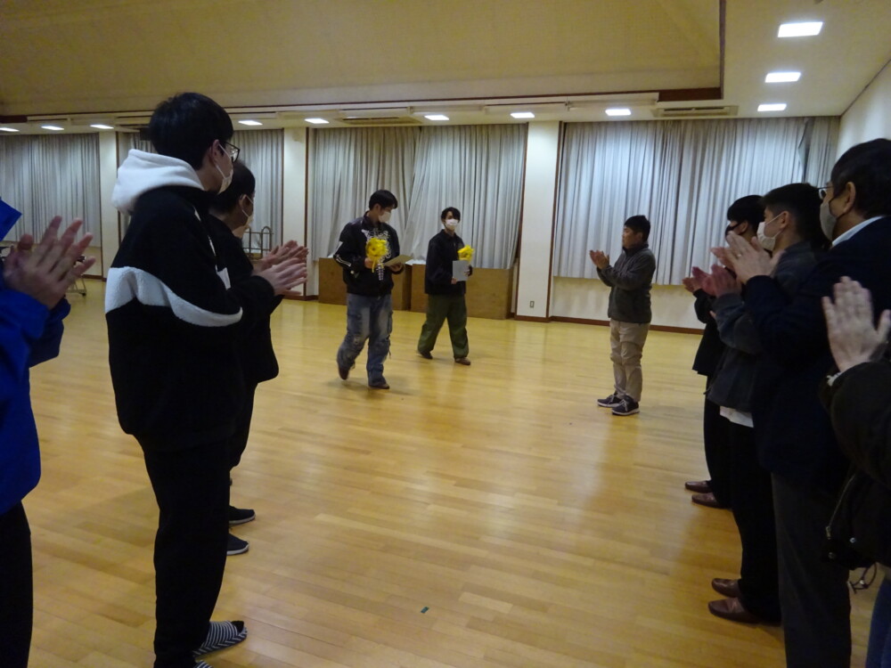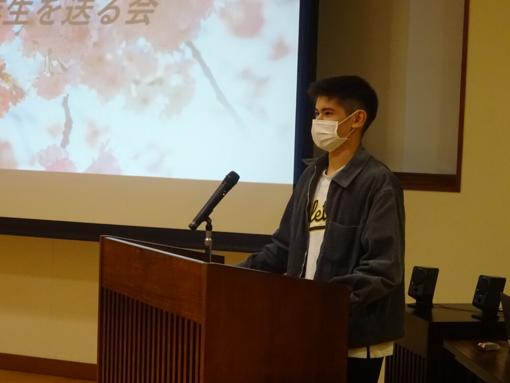 2月26日(水)に令和6年度卒業生を送る会が行われました。4年間の思い出を生徒会長自らが作成したパワーポイントで振り返り、楽しいひとときを過ごしました。最後に在校生代表から花束と色紙を渡し、4年次生との別れを惜しみました。