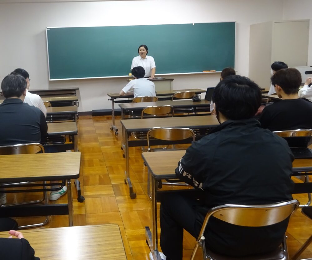 山梨県立都留高等学校定時制 > 活動の様子 > 学校行事 > 全校集会(夏休み明け) 2025年8月28日カテゴリー: 活動の様子 学校行事 全校集会(夏休み明け) 8月25日(月)に夏休み明けの全校集会が行われました。全員で校歌斉唱した後、教頭が「これからの4ヶ月間は学園祭や教育祭、定期試験や英語検定、文章検定等、イベントが盛り沢山です。今の自分の力にプラス1くらいの目標を立ててがんばりましょう」と呼びかけました。生徒たちは、生活面、学習面それぞれについて各自で目標を立て、配布された用紙に記入していました。