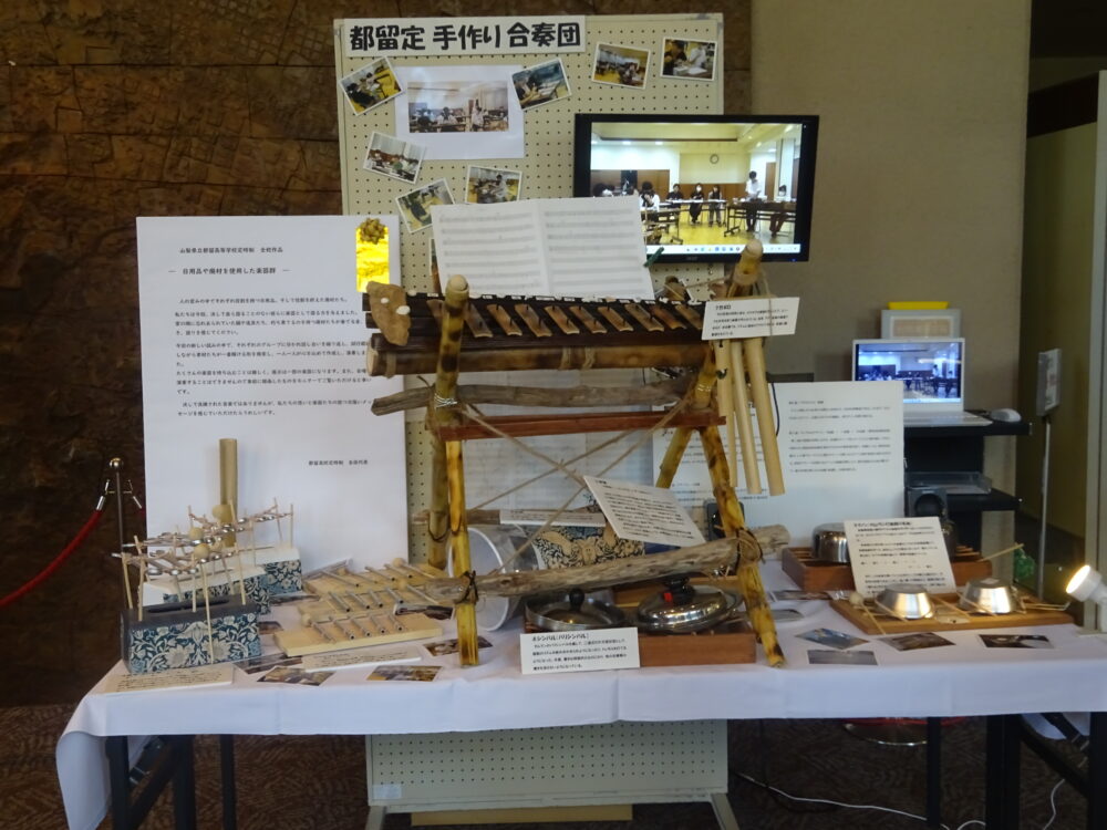 山梨県立都留高等学校定時制 > 活動の様子 > 学校行事 > 第73回定通教育祭 2025年10月22日カテゴリー: 活動の様子 学校行事 第73回定通教育祭 10月15日(水)に第73回定時制通信制高校教育祭がYCC県民文化ホールで開催されました。参加校の文化作品展を見学し、邦楽ユニット弐鷹ーNitakaーによる演奏を鑑賞しました。生活体験発表大会では、本校代表生徒が「2年生になってからの自分と将来の自分」というタイトルで発表しました。「卓球全国大会で仲間との信頼が深まった」「なりたい大人になるために日常生活の疑問を大切にしたい」と語りました。教育祭の最後には文化作品審査結果が発表され、全校制作「日用品や廃材を使用した楽器群」(都留定手作り合奏団演奏動画付)が優秀賞に輝きました。