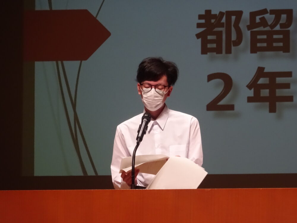 10月15日(水)に第73回定時制通信制高校教育祭がYCC県民文化ホールで開催されました。参加校の文化作品展を見学し、邦楽ユニット弐鷹ーNitakaーによる演奏を鑑賞しました。生活体験発表大会では、本校代表生徒が「2年生になってからの自分と将来の自分」というタイトルで発表しました。「卓球全国大会で仲間との信頼が深まった」「なりたい大人になるために日常生活の疑問を大切にしたい」と語りました。教育祭の最後には文化作品審査結果が発表され、全校制作「日用品や廃材を使用した楽器群」(都留定手作り合奏団演奏動画付)が優秀賞に輝きました。