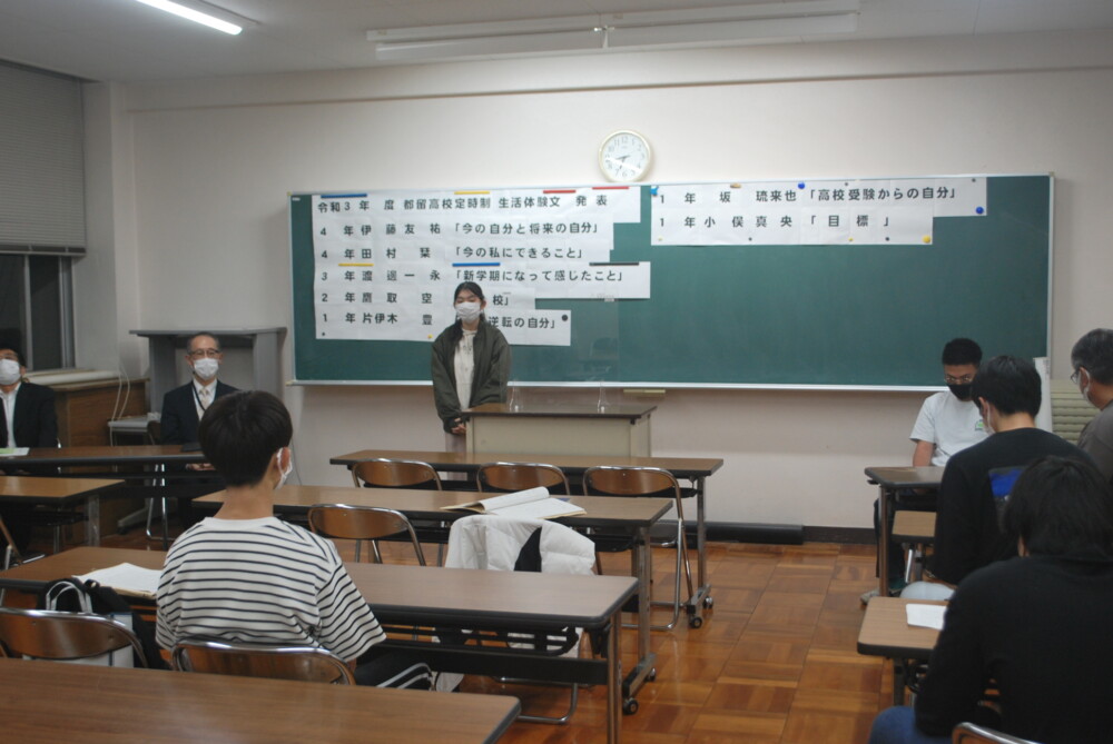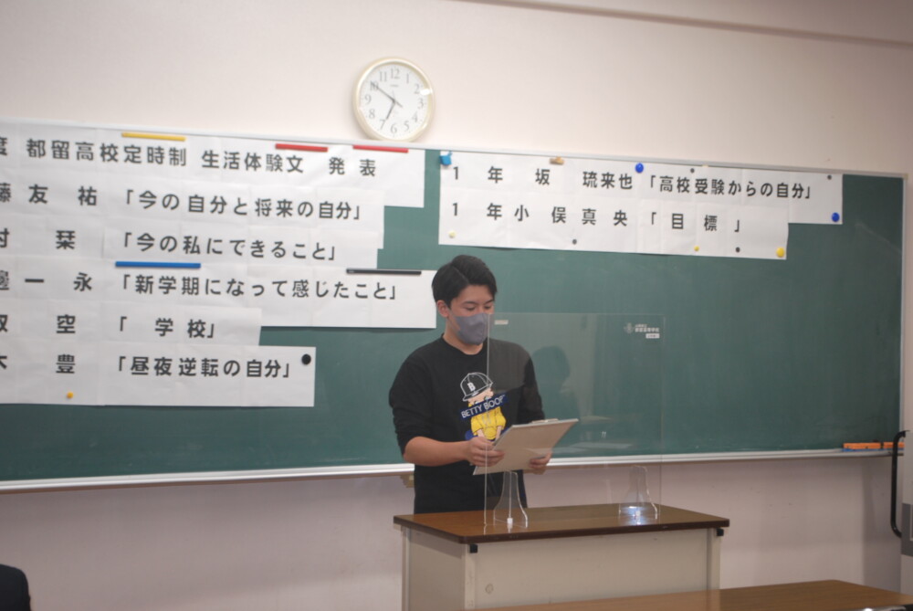 山梨県立都留高等学校定時制 > 活動の様子 > 学園祭(1日目) 2021年9月30日カテゴリー: 活動の様子 学園祭(1日目) 9月16日(木)学園祭の1日目が行われました。 開祭式の後は生活体験文発表大会が行われ、参加者全員が生活体験文を発表しました その後文化作品(ペーパークラフト・刻字・絵手紙)の展示を見学し、お互いに採点をしあいました。