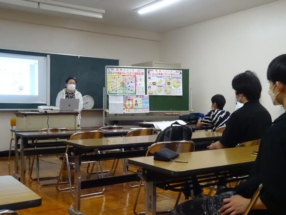 令和4年度食育講話が6月30日(木)に開催されました。本校定時制の給食業務について、いつも御指導いただいている栄養士の先生から、「食育の祖」である石塚左玄氏の教えを聞かされ、食の大切さを再認識しました。更にSDGsとの関連を分かりやすく解説していただき、食品ロスや環境保護についての問題意識も高まりました。毎月来校して給食業務への助言をなさったり、調理員さんと共に生徒に配膳して下さったりしている先生が講師だったので、講話後の生徒との質疑応答も活発に行われました。