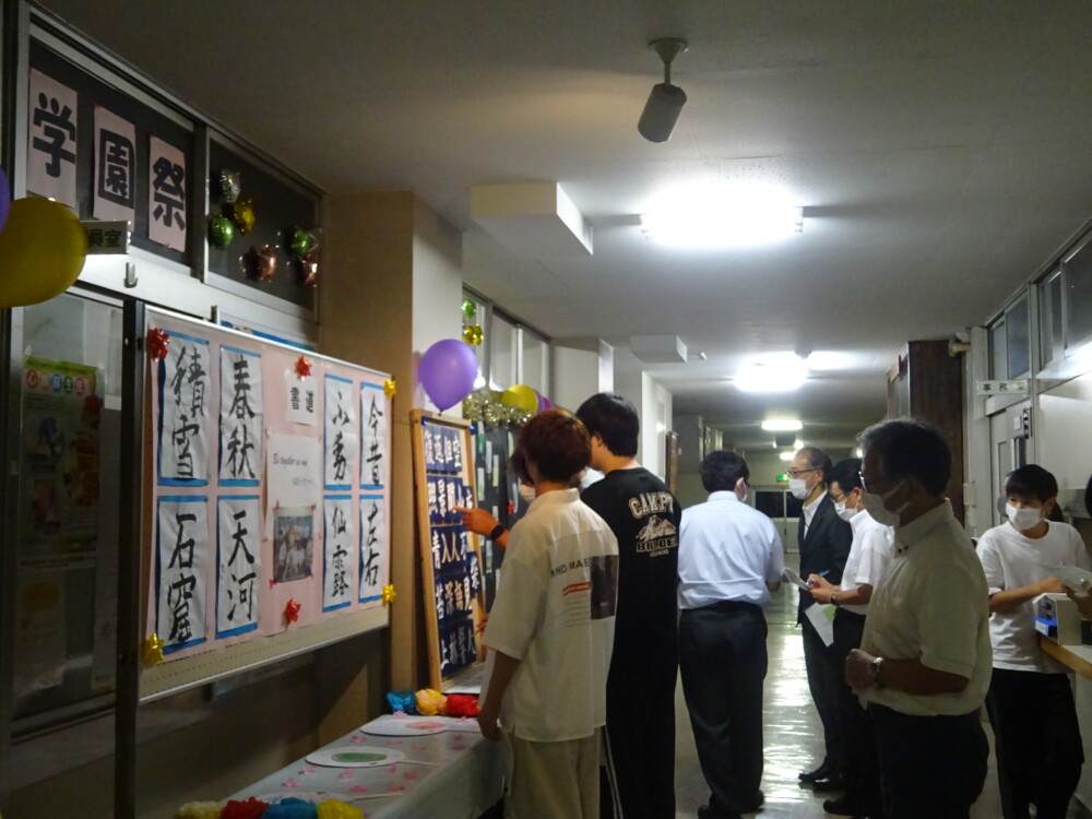 今年度のテーマは「Be together as one 心をひとつに」です。開祭式では、校長先生から「このテーマのとおりに、仲間の大切さを確認し、お互いの絆を深めてほしい」という御言葉をいただきました。そして、生徒会長が「コロナに負けず、互いに高め合い、楽しみ、協力して最高の思い出を創ろう」と全校生徒に呼びかけました。初日の内容は、全校生徒による生活体験発表会と展示見学および作品の審査、投票です。生活体験発表で最優秀に選ばれたた生徒は、10月12日(水)の定時制通信制高校教育祭にて学校代表として発表することになっています。定時制職員室前にて展示中の絵手紙・刻字・書道作品については、選ばれた作品はもちろん、全校生徒の作品を教育祭においても展示します。「心をひとつに」全員で取り組んだ作品を10月7日(金)まで展示しているので、本校にお立ち寄りの際は、是非御覧ください。